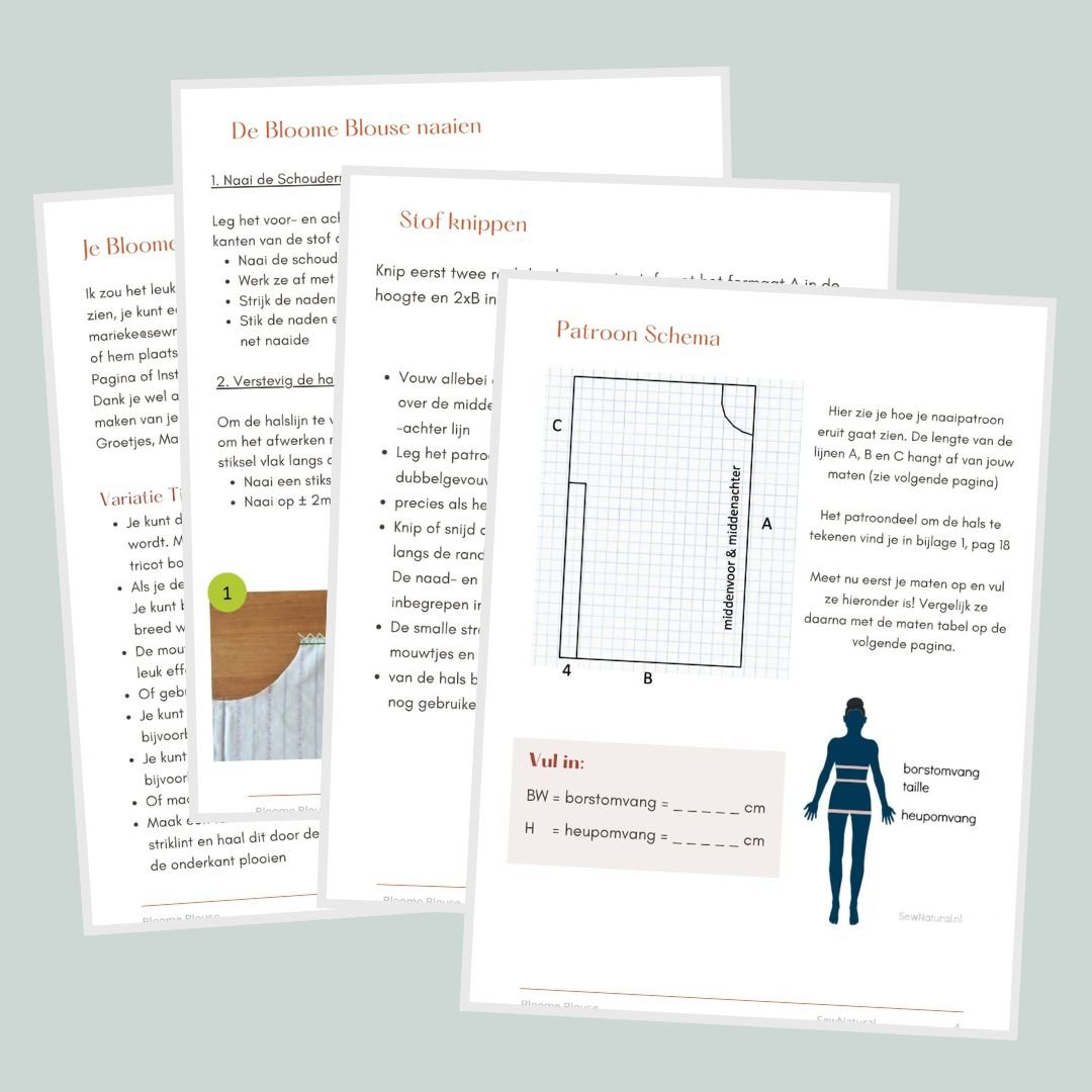 Ga aan de slag met een zelf-getekend naaipatroon aan de hand van mijn maten tabel. Knip je stoffen op maat en maak de Bloome Blouse in al jouw favoriete kleuren.